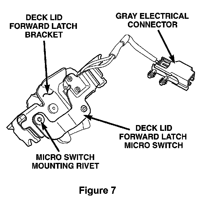 d. Disconnect the gray deck lid forward latch micro switch from the body wiring harness.
