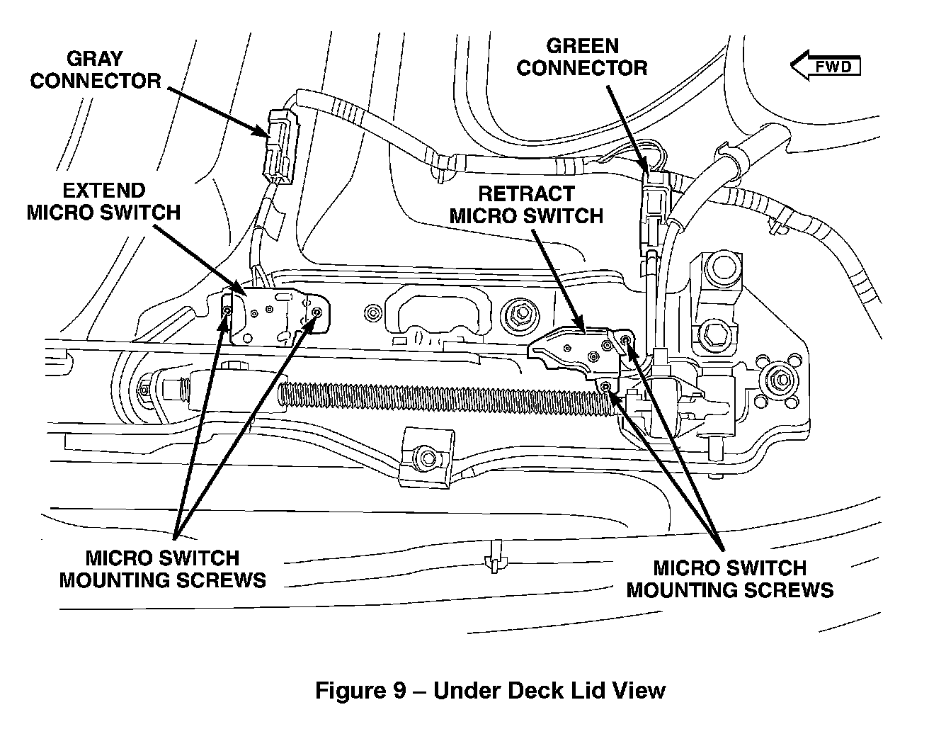 12. Perform the following procedure to replace the deck lid forward match micro switch: