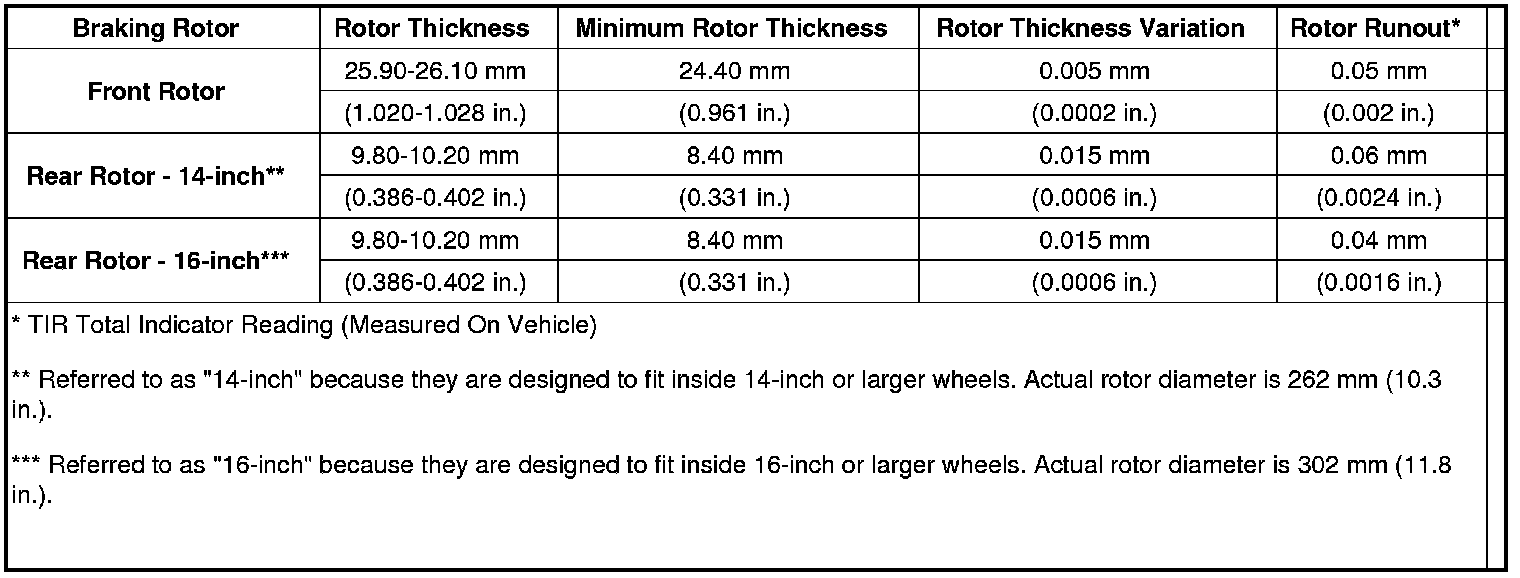 BRAKE ROTOR LIMITS/SPECIFICATIONS