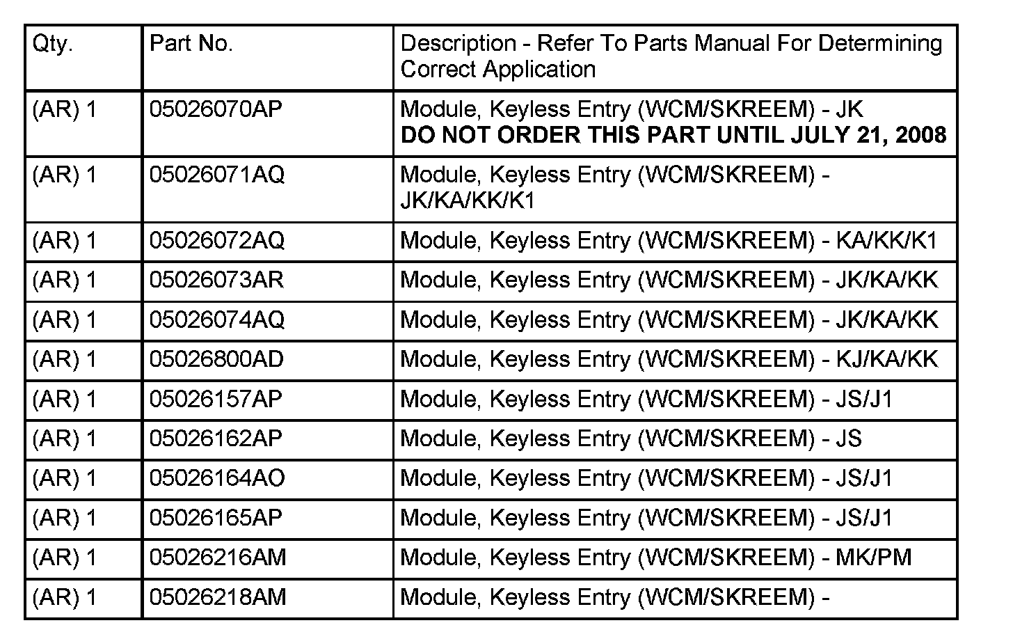 This bulletin involves the replacement of the Wireless Control Module (WCM), and if equipped, the replacement of the Electric Steering Column Lock (ELV). The WCM is also referred to as the Sentry Key Remote Entry Module (SKREEM).