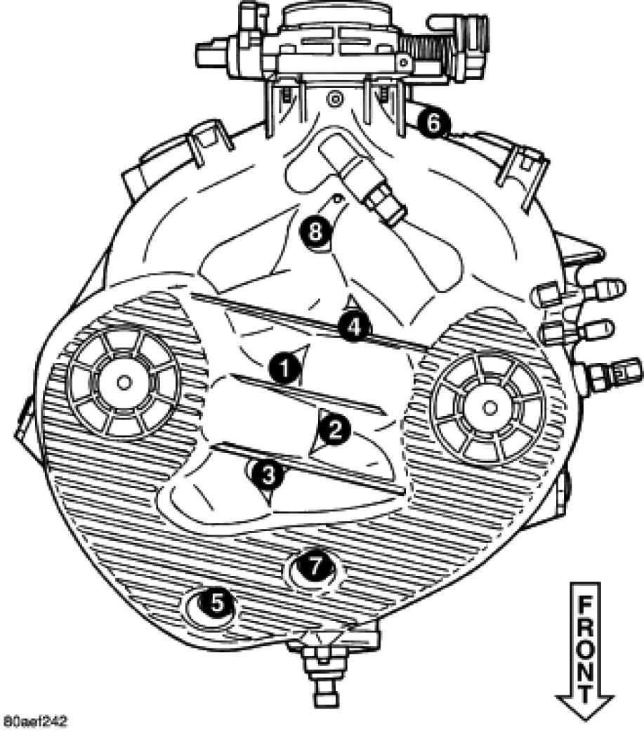 Tighten the three bolts (1), (2), (4) and one stud (3) in a mandatory torque criss - cross pattern sequence to 5.5 Nm (50 in. lbs.)