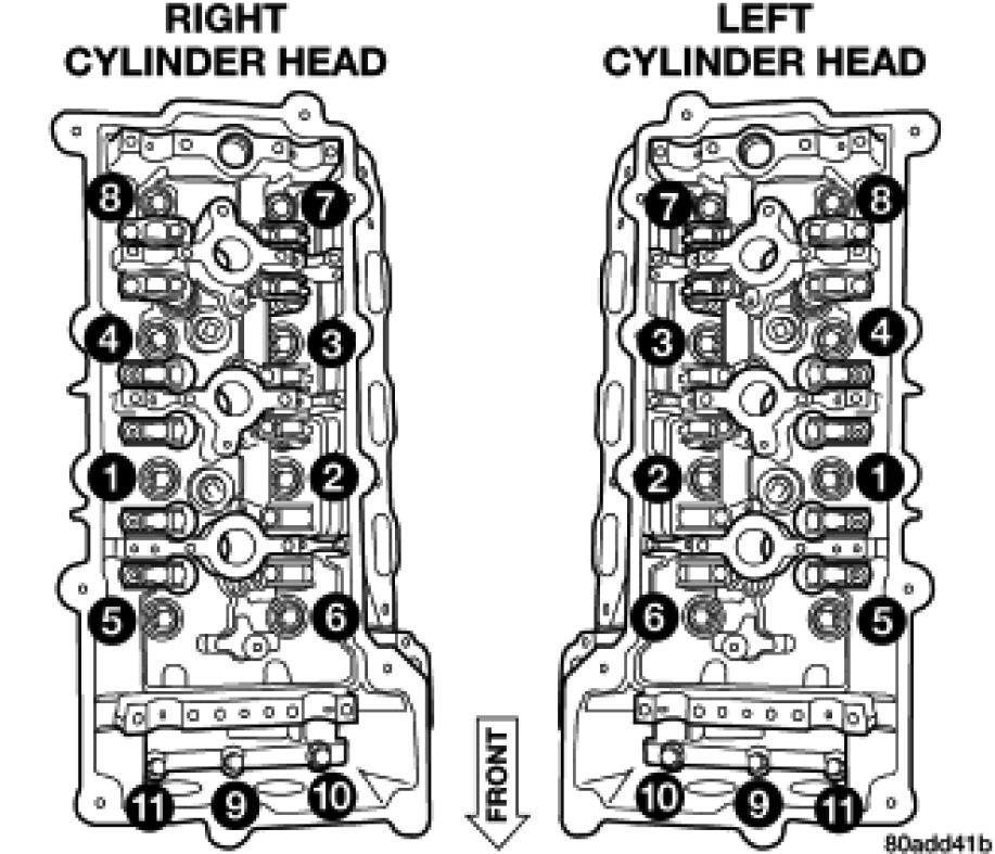 Tighten cam bearing cap bolts gradually in sequence shown to 12 Nm (105 in. lbs.).