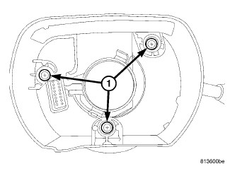 1. Loosen the three clockspring screws (1) just far enough to release the clockspring from the SCCM. Leave them in the clockspring so it won't unwind.