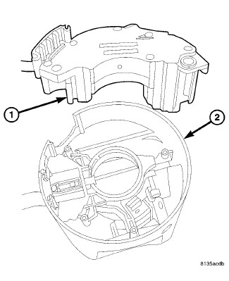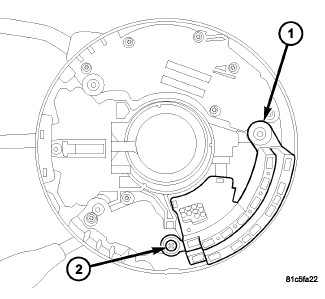 2. If equipped with ESP, install the steering angle sensor (1) and phillips head screw (2) to SCCM. Tighten phillips head screw to.7 Nm (6 in. lbs.). If not equipped with ESP, install the plastic insert and phillips head screw to steering column. Tighten phillips head screw to.7 Nm (6 in. lbs.).