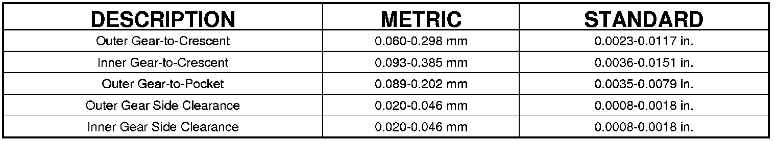 OIL PUMP CLEARANCES