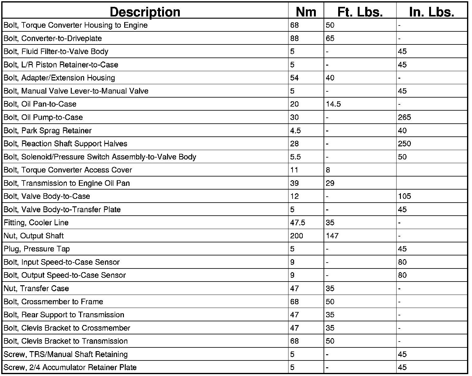TORQUE SPECIFICATIONS