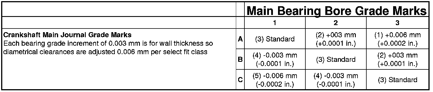 Main Bearing Diametrical Clearance 0.032-0.062 mm (0.0013-0.0024 in.)