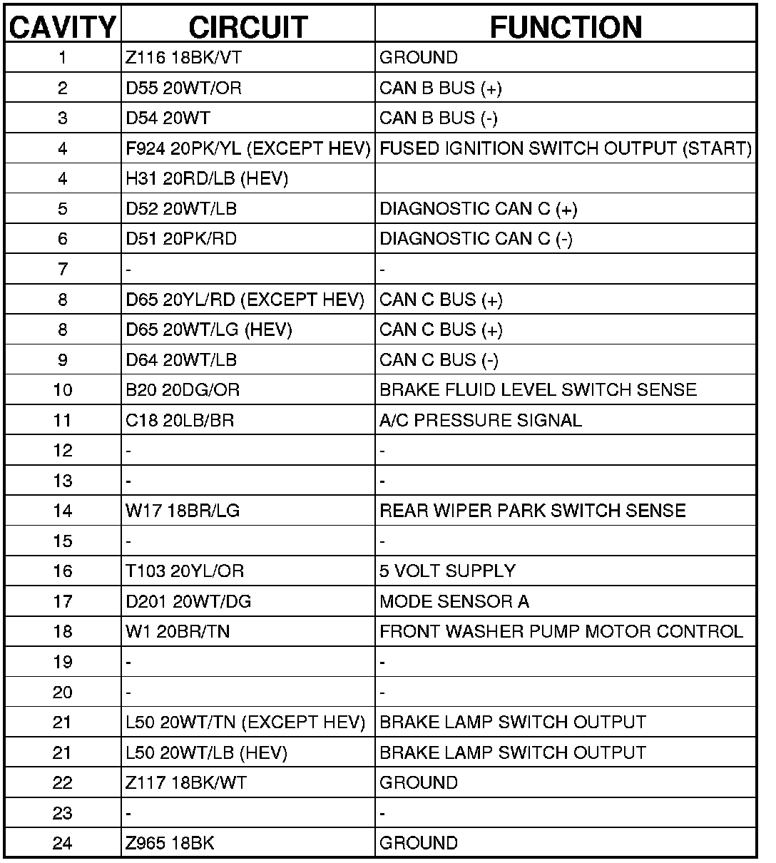 Connector C1 - (HEADLAMP AND DASH) 24 WAY