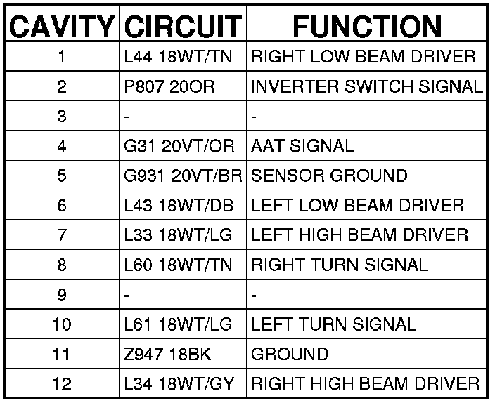 Connector C2 - (HEADLAMP AND DASH) 12 WAY