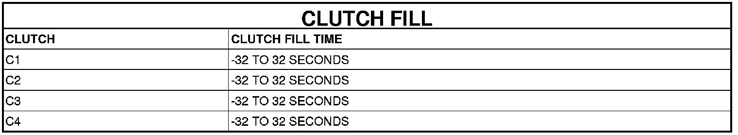 Certain mechanical problems within the input clutch assembly can cause inadequate or out-of-range element volumes. Also, defective Input/Output Speed Sensors and wiring can cause these conditions. The following charts identifies the appropriate clutch volumes and when they are monitored/updated: