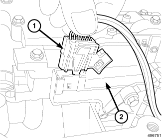 9. Disconnect the TEHCM electrical connector (1) from the valve body (2).