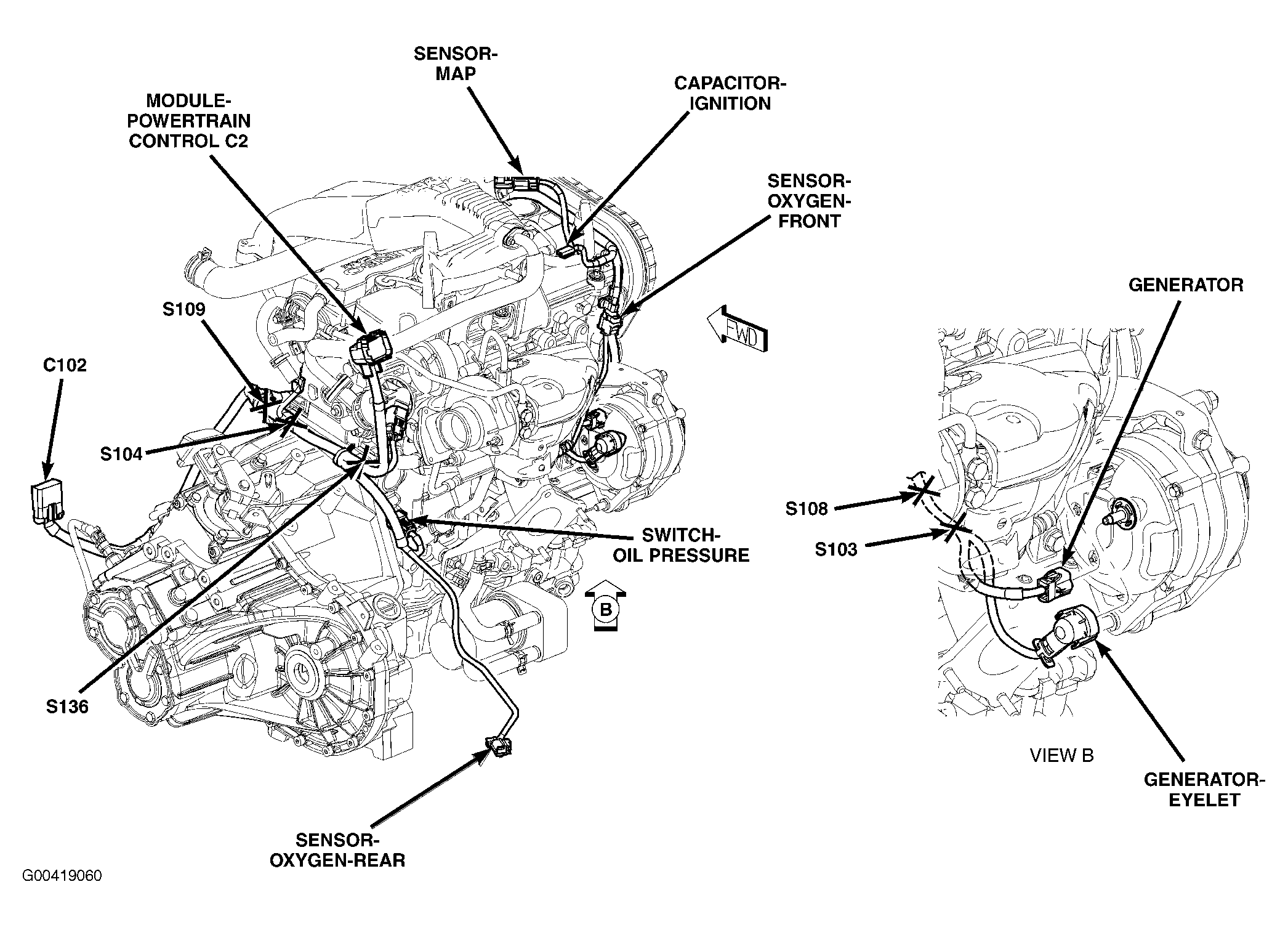| Ignition Capacitor | Top front of valve cover. See Figure. |