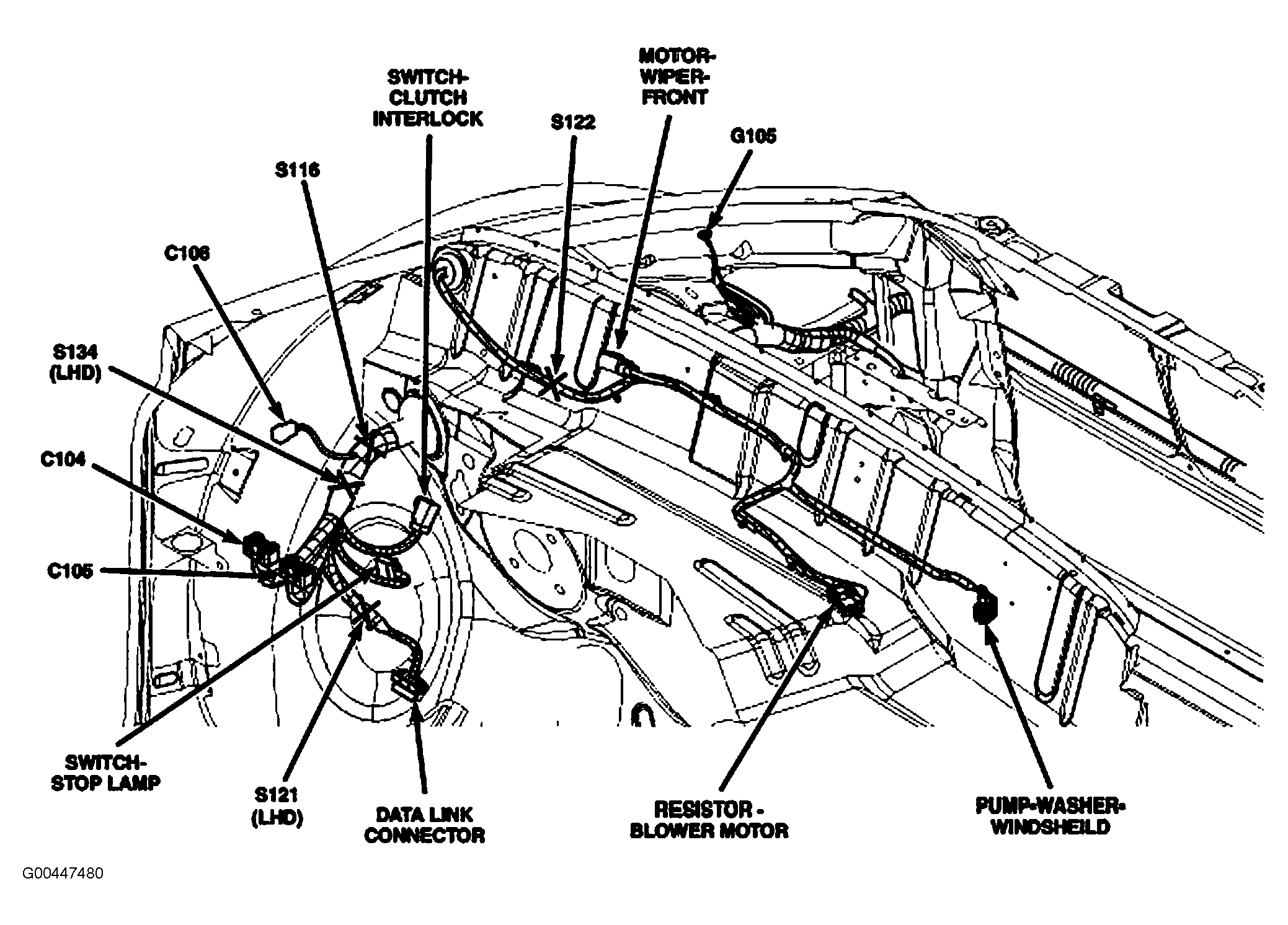 | Blower Motor Resistor | Behind right side of dash, in blower motor housing. See Figure. |