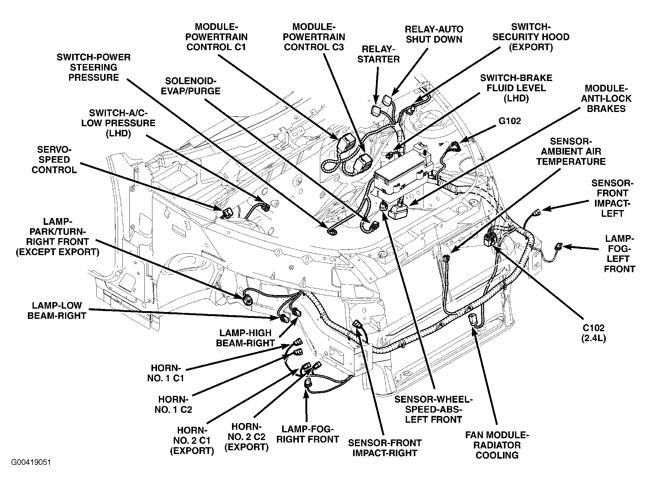 | Anti-Lock Brake Module | Left side of engine compartment, on bottom of hydraulic control unit. See Figure. |