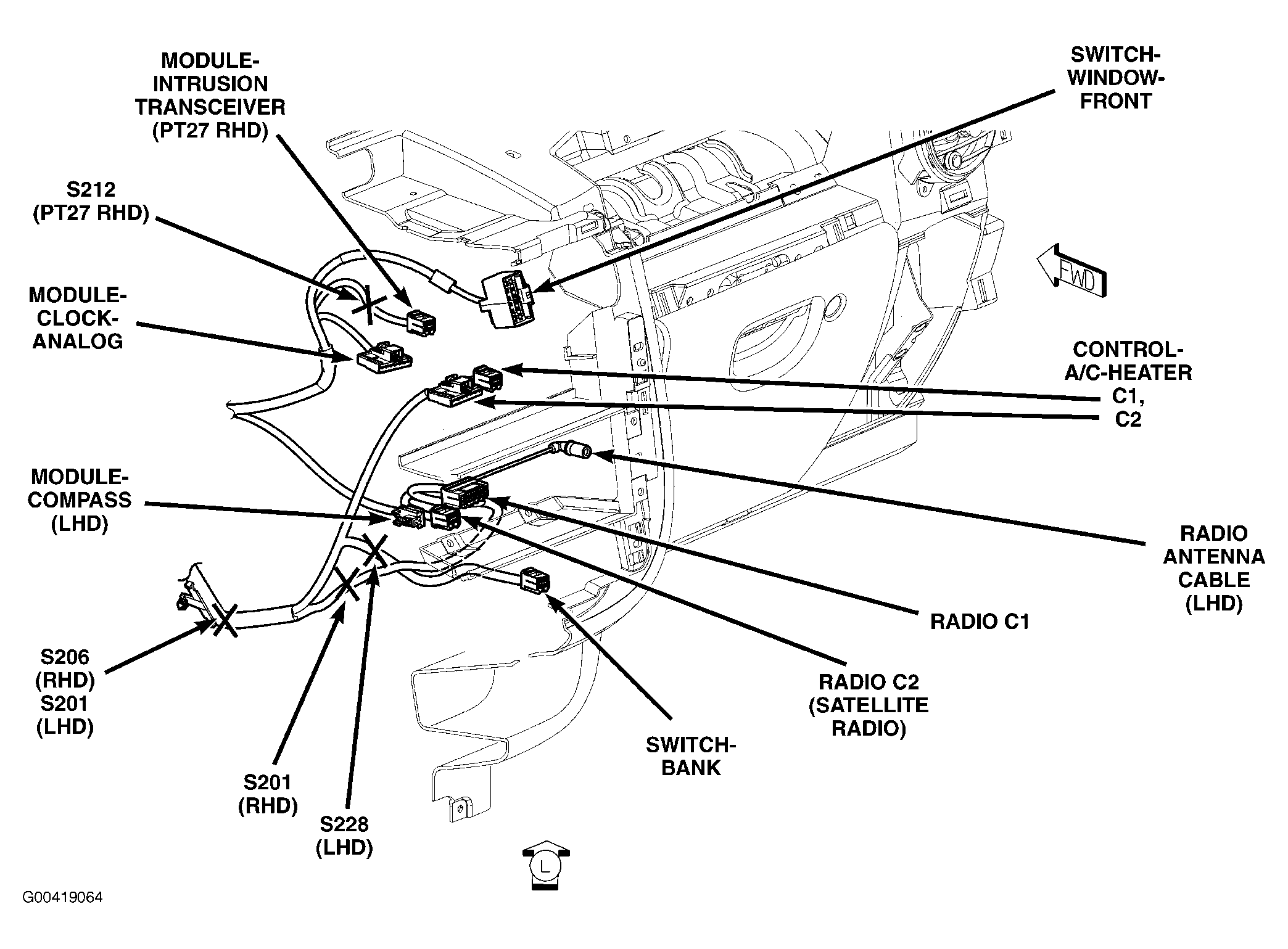 | Satellite Receiver | Left "C" pillar. See Figure. |
