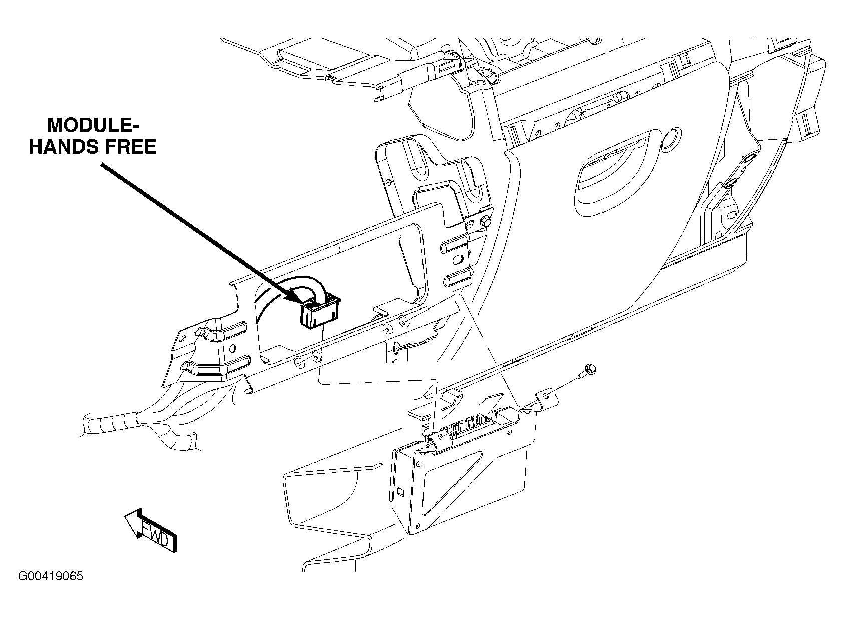 | Hands Free Module | Left center of instrument panel. See Figure. |