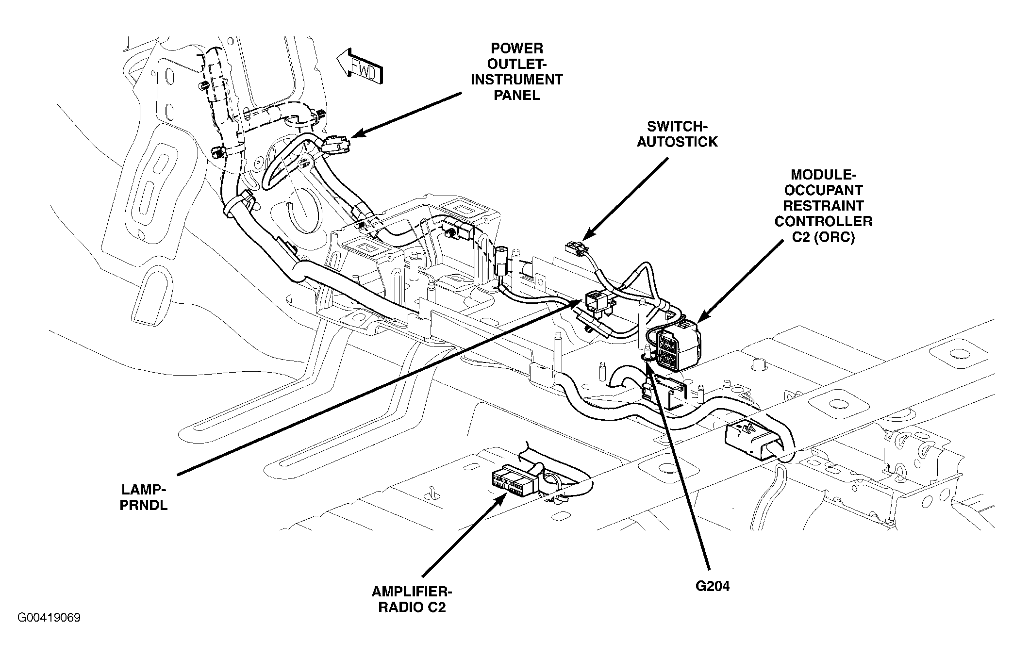 | Occupant Restraint Controller Module | Center body floor. See Figure. |