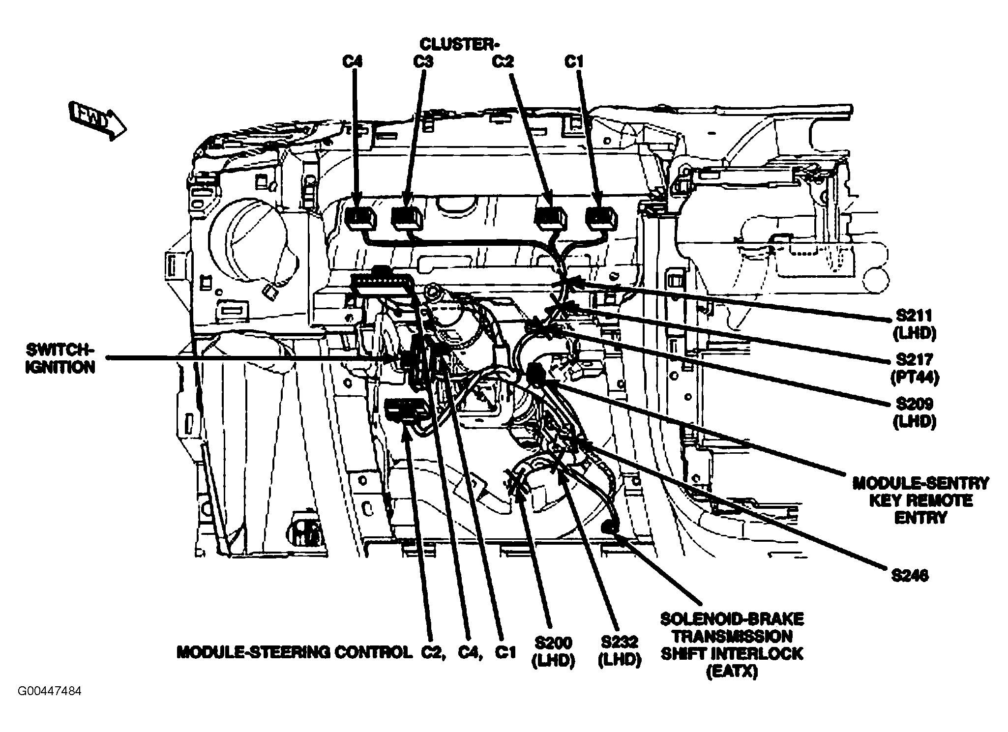 | Sentry Key Remote Entry Module | On steering column, near ignition lock cylinder. See Figure. |
