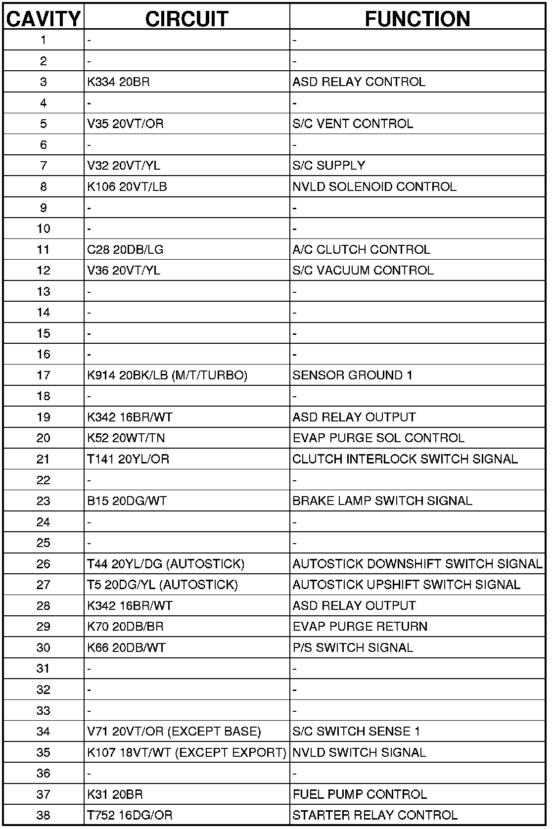Connector C3 (NGC) - (HEADLAMP AND DASH) 38 WAY