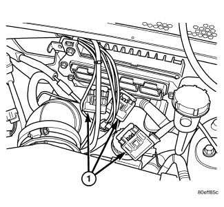 3. Unlock and disconnect the 3 or 4 electrical connectors (1) from the Powertrain Control Module (PCM).