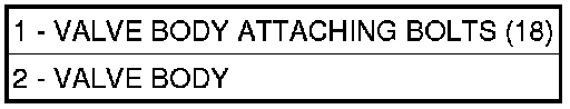 NOTE: To ease removal of the valve body (1), turn the manual valve lever fully clockwise to low or first gear.