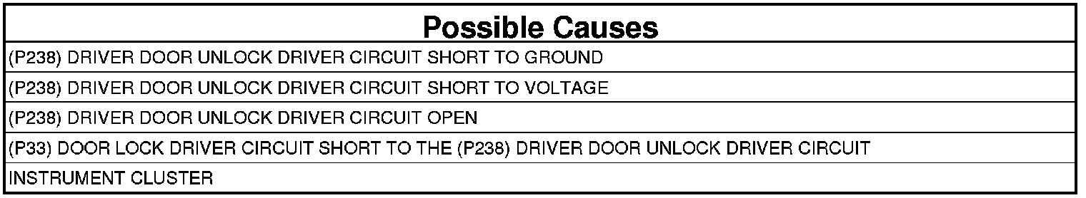 1. (P238) DRIVER DOOR UNLOCK DRIVER CIRCUIT SHORT TO GROUND