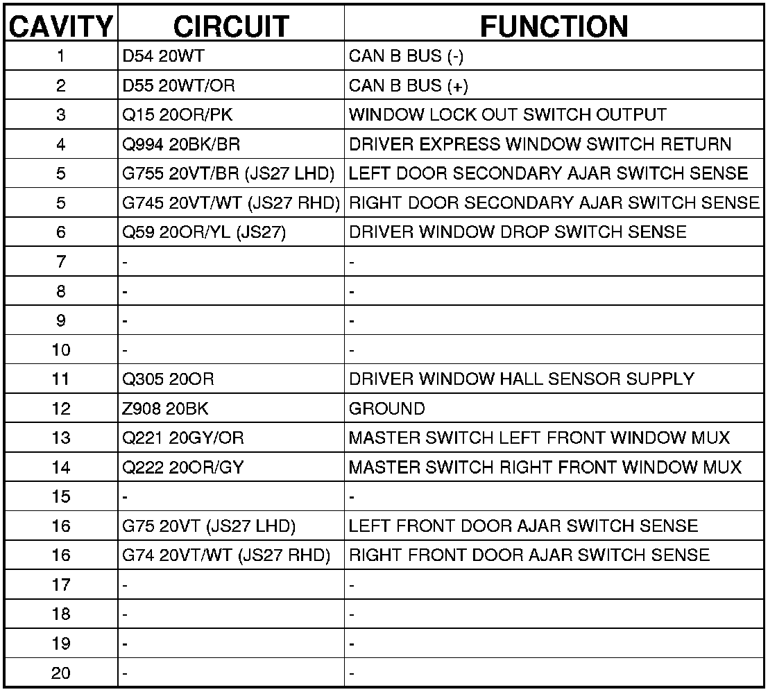 Connector C2 - (DRIVER DOOR) 20 WAY