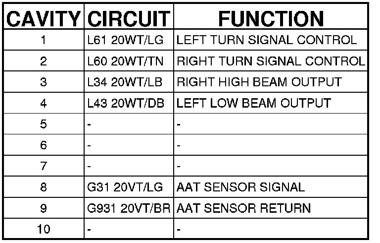 Connector C4 - (HEADLAMP AND DASH) 10 WAY