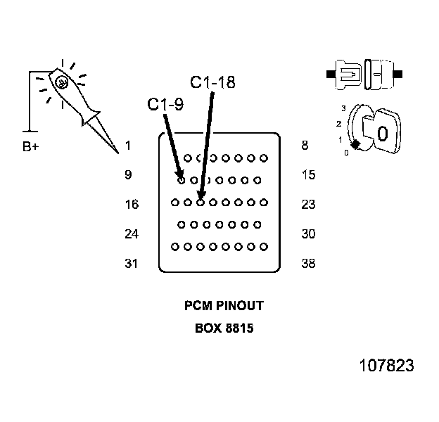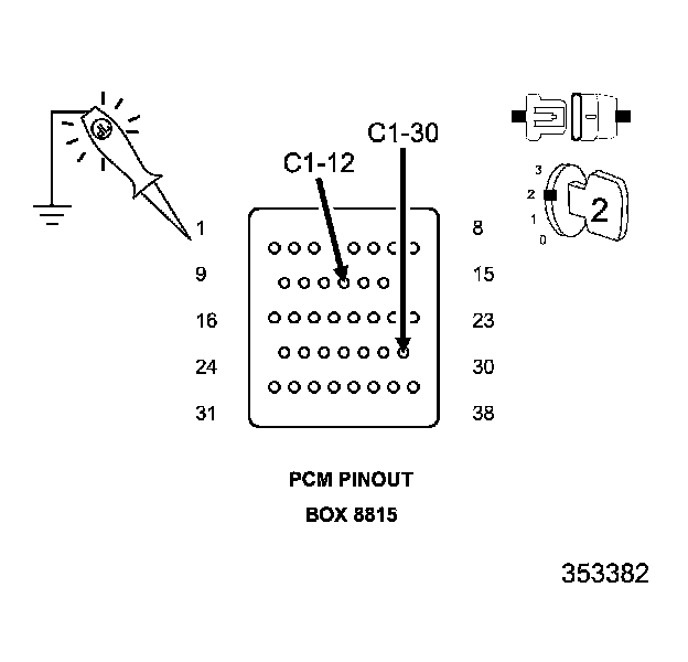 1. Using a 12-volt test light connected to ground, check the PCM power supply circuits.