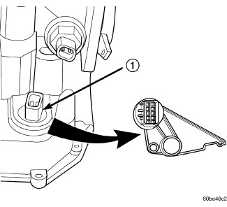 The Transmission Range Sensor (TRS) (1) is mounted to the top of the valve body inside the transaxle and can only be serviced by removing the valve body. The electrical connector extends through the transaxle case.