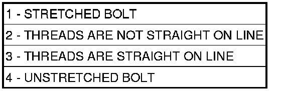 The 185 mm (7.283 in.) length bolts must be checked for stretching. Check the bolts with a straight edge for necking (2). If the bolts are necked down, they must be replaced.