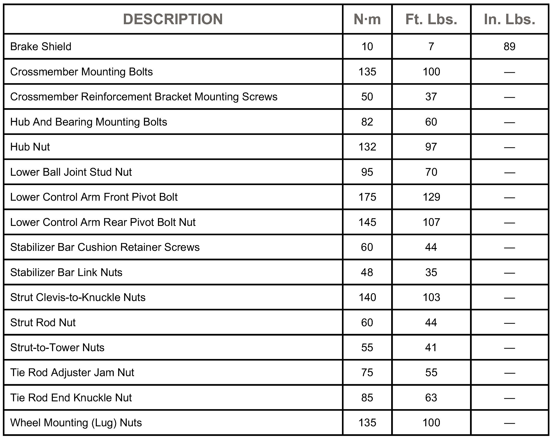 Front Suspension Specifications
