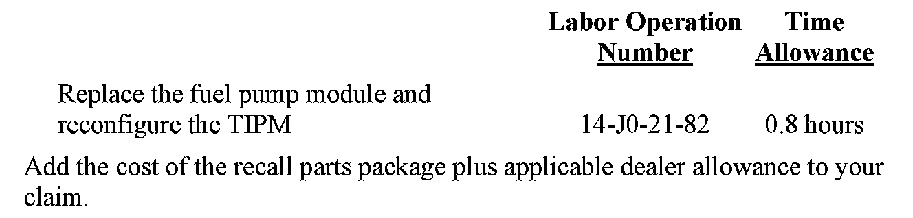 The fuel pump module must be replaced and the Totally Integrated Power Module (TIPM) must be reconfigured.