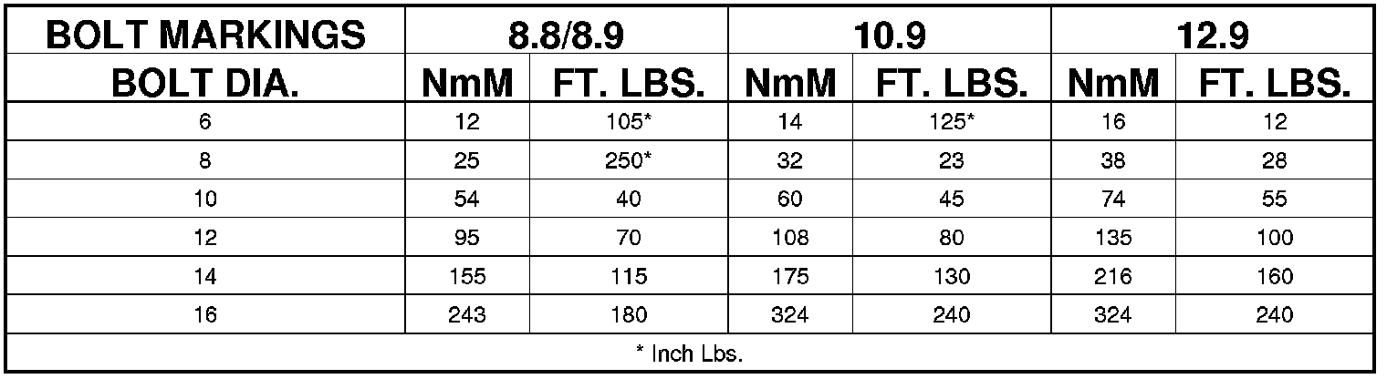 BOLT MARKINGS AND TORQUES - METRIC