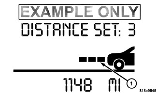 If there is no vehicle ahead, the vehicle will maintain the set speed. If a slower moving vehicle is detected in the same lane, the EVIC displays the "Sensed Vehicle Indicator" icon, and the system adjusts vehicle speed automatically to maintain the distance setting, regardless of the set speed.