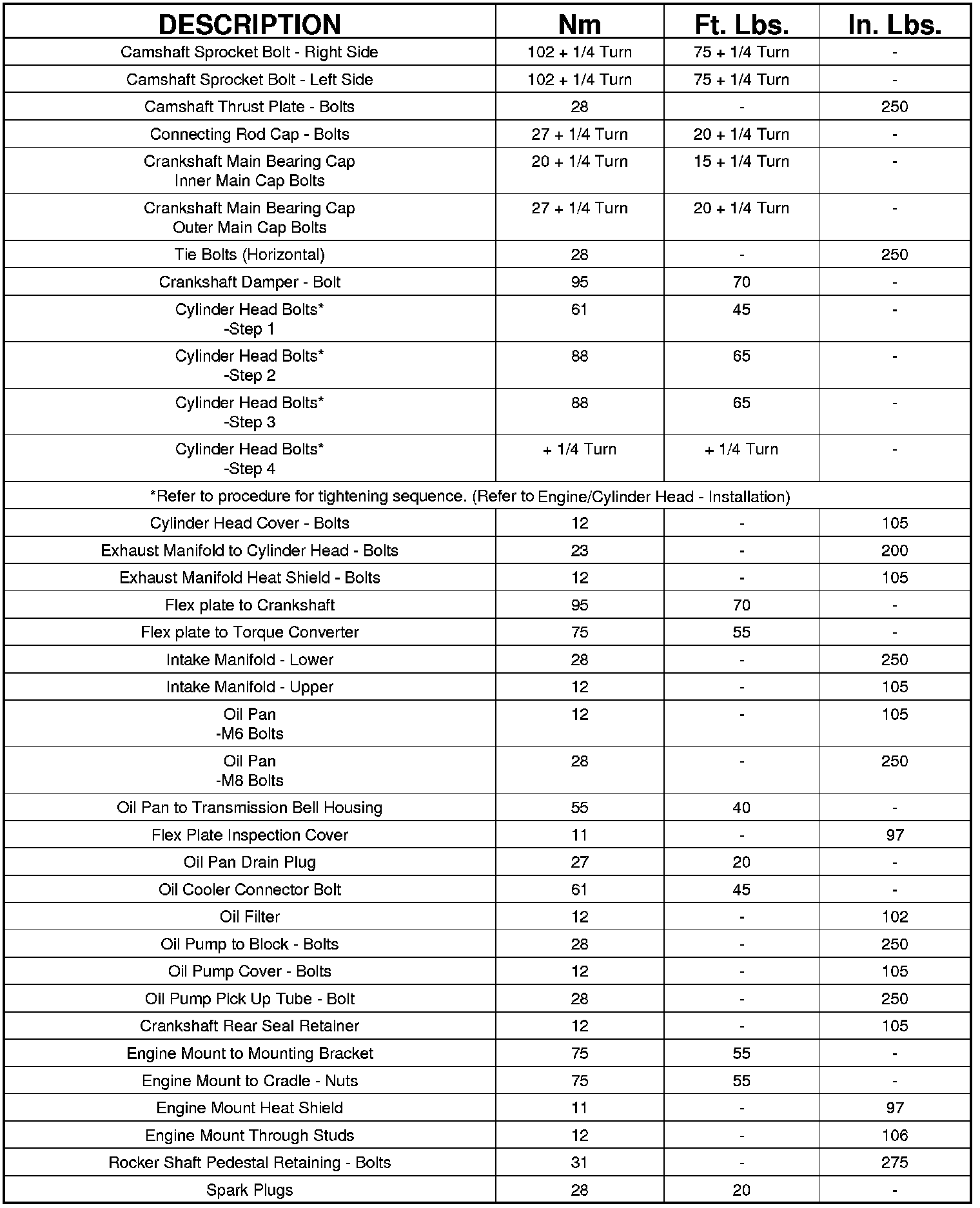 Engine Torque Specifications