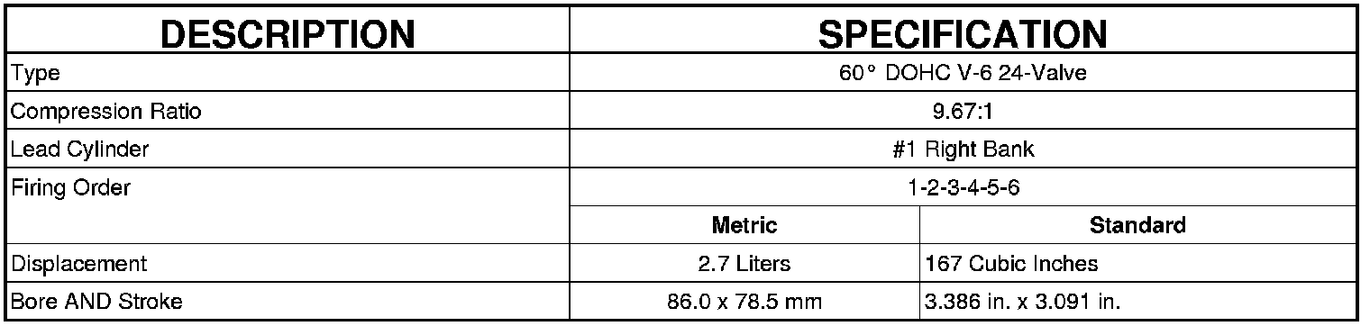 Home >> Chrysler >> 2010 >> Sebring Convertible V6-2.7L >> Repair and Diagnosis >> Specifications >> Mechanical Specifications >> Engine >> System Specifications >> Engine Specifications