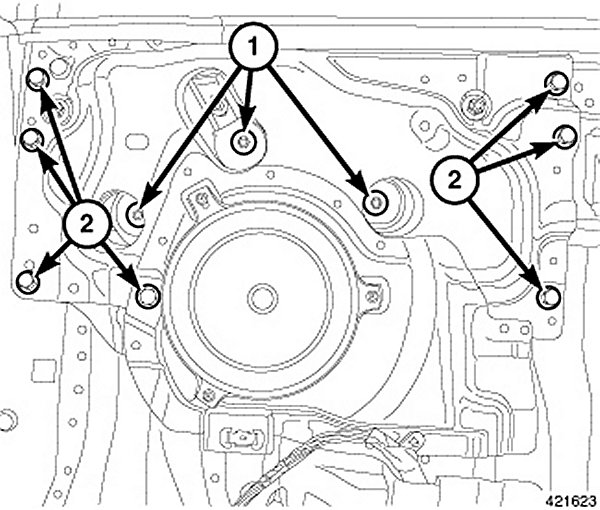 3. If adjustment of the front door window is required, remove the front door trim panel. Front Door Trim Panel - Removal.