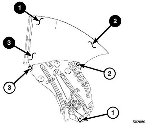 NOTE: Verify that the door is properly adjusted to the body prior to adjusting the door glass.