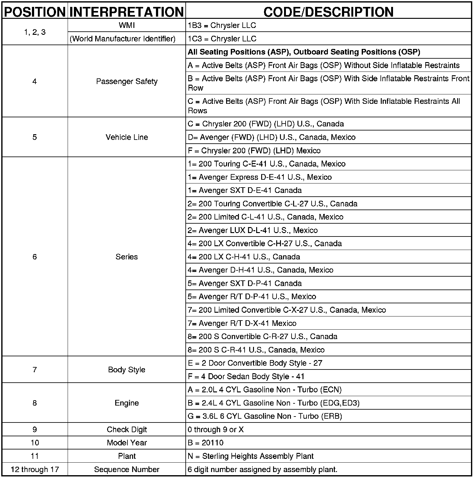 Home >> Chrysler >> 2011 >> 200 L4-2.4L >> Repair and Diagnosis >> Application and ID >> Vehicle Identification Number