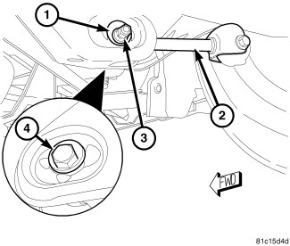 1. While holding the cam bolt head (4) stationary, loosen the toe link mounting cam bolt nut (3).