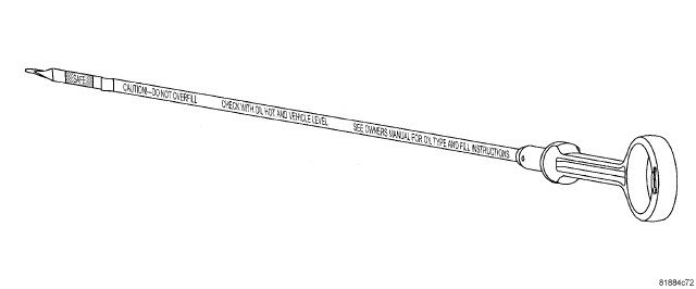 Checking the oil while the vehicle is on level ground will improve the accuracy of the oil level reading. Remove dipstick (1), and observe oil level. Add oil only when the level is at or below the SAFE mark. If the oil level is in the safe (2) range, do not add oil.