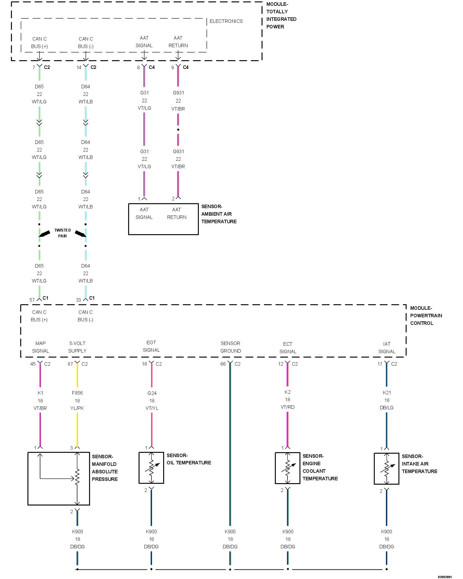 1. Using the wiring diagram/schematic as a guide, inspect the wiring and connectors between the Engine Coolant Temperature Sensor and the Powertrain Control Module (PCM).