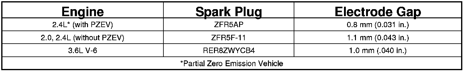 Spark Plug Specifications