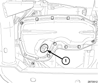 9. Install the drain plug (1) in the oil pan and tighten to 27 Nm (20 ft. lbs.).