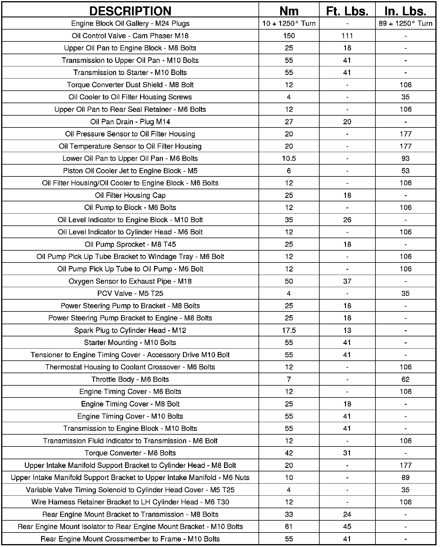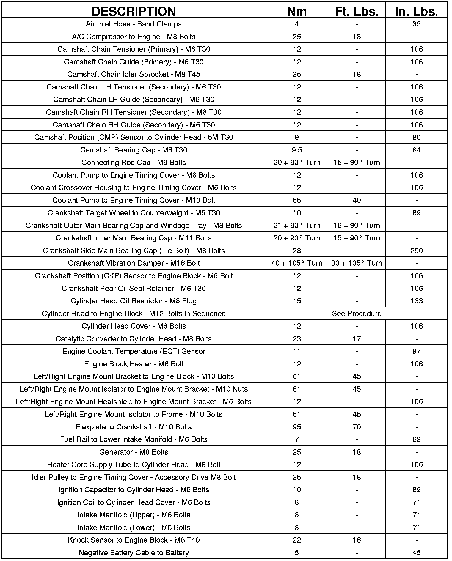 Engine Torque Specifications