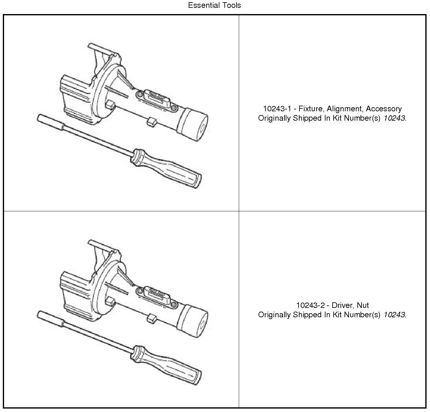 The adaptive speed control sensor (also known as the Adaptive Cruise Control/ACC sensor or module, or the radar sensor or module) requires alignment whenever the ACC sensor is removed and reinstalled, whenever front end structural repairs are performed or whenever a Diagnostic Trouble Code (DTC) indicates ACC sensor adjustment is required. Sensor alignment consists of performing the mechanical vertical alignment described in the following procedure, followed by the electronic horizontal alignment that is performed with a diagnostic scan tool and the appropriate diagnostic information.