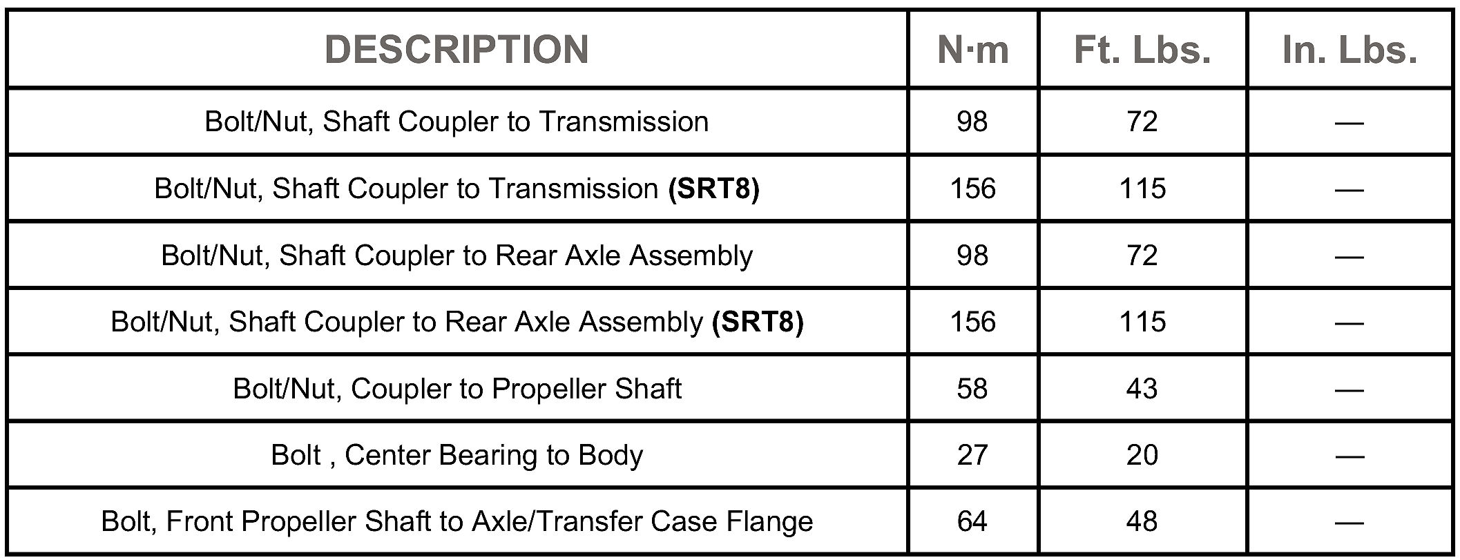 SPECIFICATIONS - TORQUE