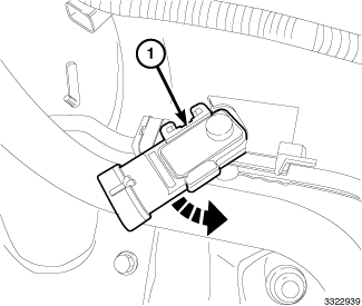 2. Install the fuel tank pressure sensor (1) into the fuel tank vent tube and rotate into position.