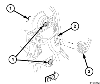 3. Reconnect each of the electrical connectors (3) to the connector receptacles of the door control module.